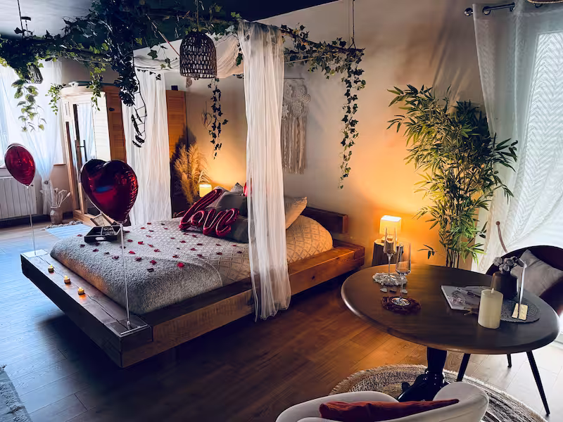 Découvrez le Jardin d'Eden : Suite Romantique avec Sauna et jacuzzi privatif proche de Beauvais